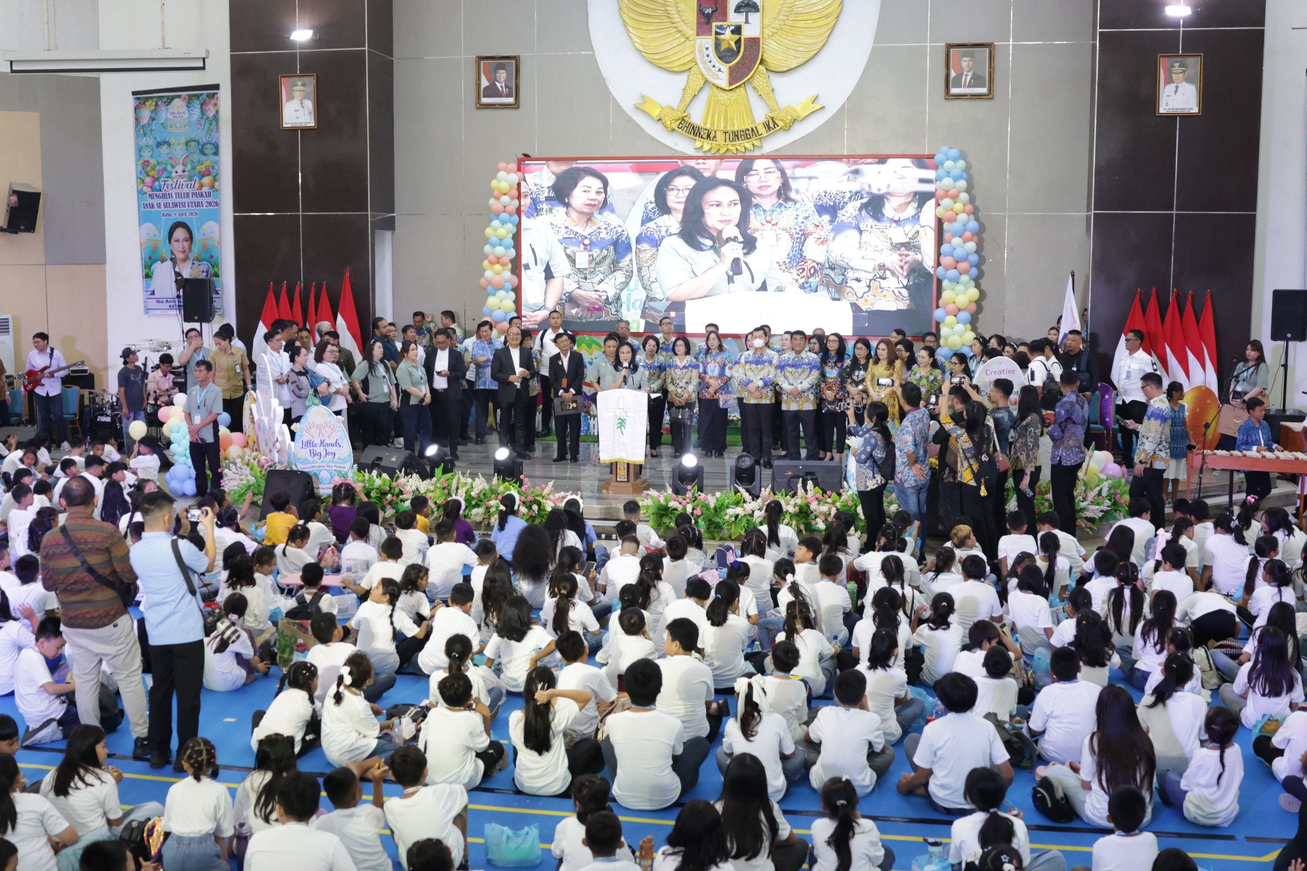 Gubernur Sulawesi Utara, Yulius Selvanus Komaling bersama Ketua TP-PKK Provinsi Sulut, Anik Yulius Selvanus hadir langsung menyaksikan kegiatan yang berlangsung meriah dan penuh antusiasme tersebut.