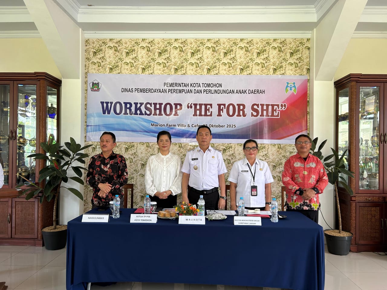 TOMOHON-SM. Wali Kota Tomohon Caroll J.A. Senduk, S.H. secara resmi membuka Workshop He for She: Gerakan Laki-laki Mendukung Kesetaraan Gender dan Pencegahan Kekerasan terhadap Perempuan dan Anak, yang digelar di Marion Farm Villa & Café, Rabu (22/10/2025).
