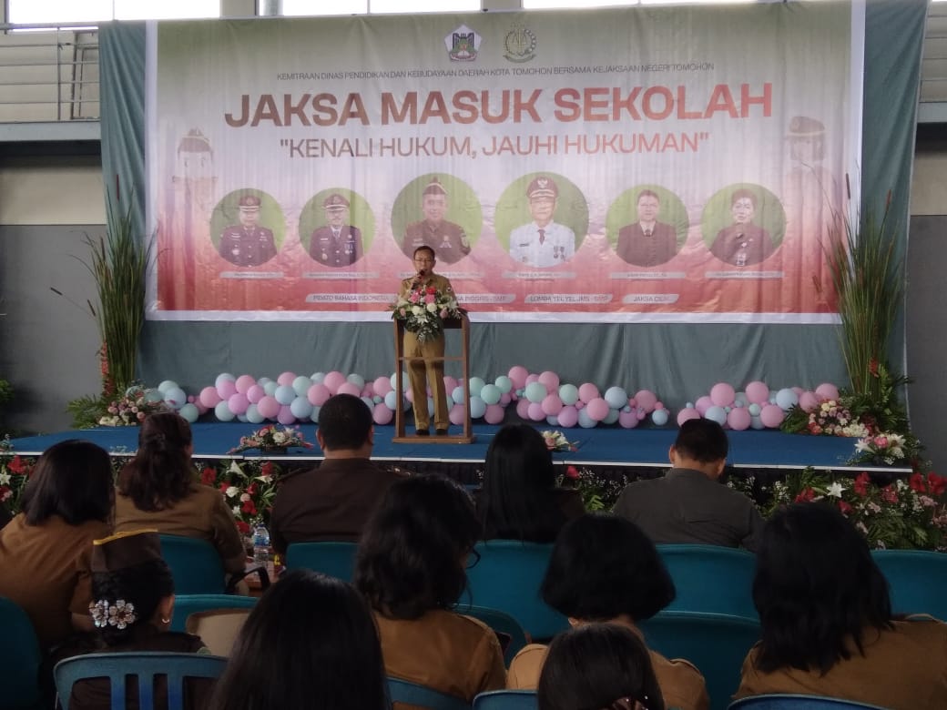 TOMOHON-SM Bertempat di Sport Hall SMP Lokon St. Nikolaus Tomohon, digelar kegiatan Jaksa Masuk Sekolah (JMS) Selasa, 14/11/2023.