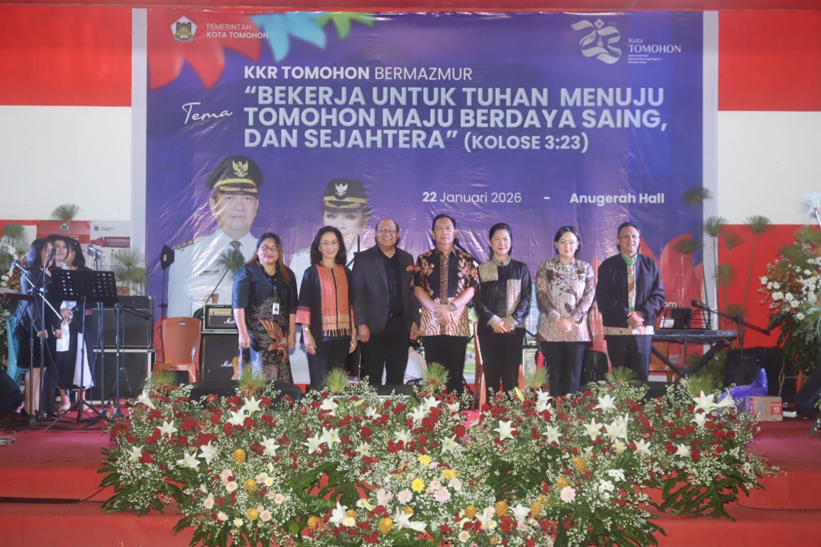 TOMOHON-SM. Dalam rangka memperingati Hari Ulang Tahun (HUT) ke-23 Kota Tomohon, Pemerintah Kota Tomohon menggelar Kebaktian Kebangunan Rohani (KKR) “Tomohon Bermazmur” dengan tema “Bekerja untuk Tuhan Menuju Tomohon Maju, Berdaya Saing, dan Sejahtera” (Kolose 3:23). Kegiatan ini berlangsung di Anugerah Hall Tomohon, Kamis (22/1/2026).