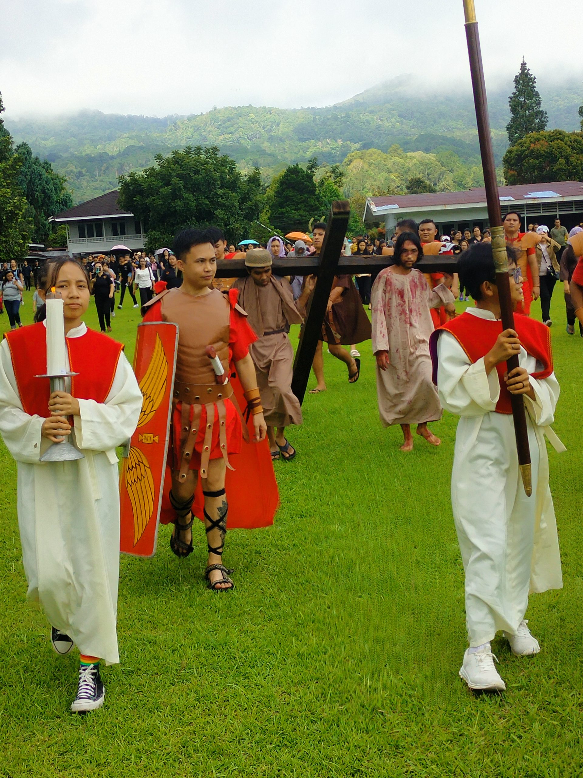 Bertujuan untuk mengingatkan umat Katolik akan kehendak Allah dan peran-Nya dalam menyelamatkan manusia dari dosa, Orang Muda Katolik (OMK) stasi Kebangkitan Kristus Kinilow Tomohon berkolaborasi dengan Kaum Bapak Katolik (KBK,) menggelar Jalan Salib Tablo atau drama kisah sengsara Yesus Kristus yang wafat di kayu salib, Jumat 29/03/2024.