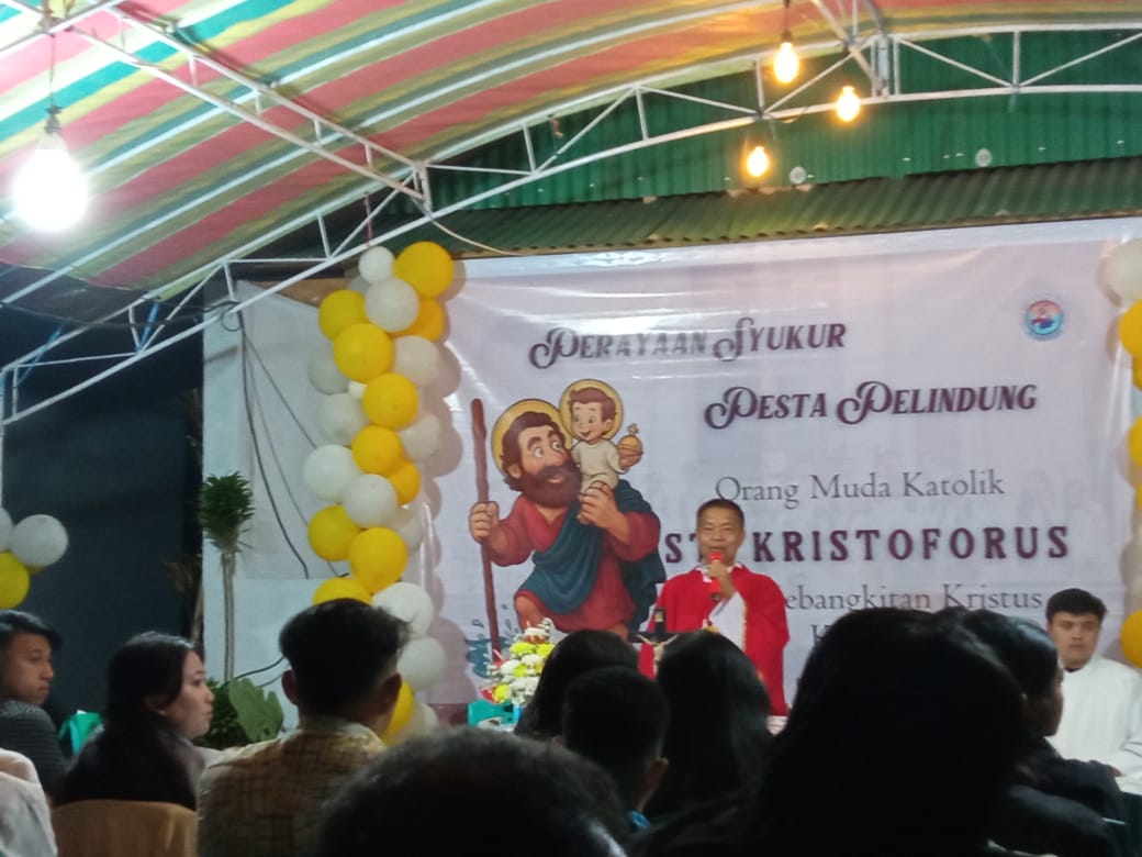 Dalam homilinya, Pastor Noldy mengajak orang muda untuk meneladani Santo Kristoforus, sosok pelindung OMK yang dikenal karena kerelaannya berkorban dan kerendahan hati dalam melayani. “Santo Kristoforus tidak mencari kemuliaan pribadi, tetapi memilih untuk menjadi pelayan, bahkan memikul orang lain demi Kristus. Semangat ini sangat relevan bagi orang muda saat ini,” tutur Pastor Noldy.