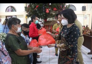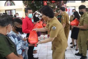 Pada kesempatan ini pula, pemerintah Kota Tomohon secara simbolis menyerahkan bingkisan Natal kepada masyarakat dan para tokoh agama, serta Hand Phone Android kepada para Kepala Lingkungan.