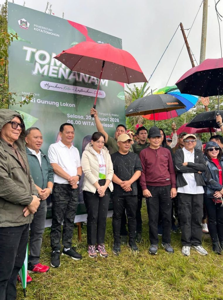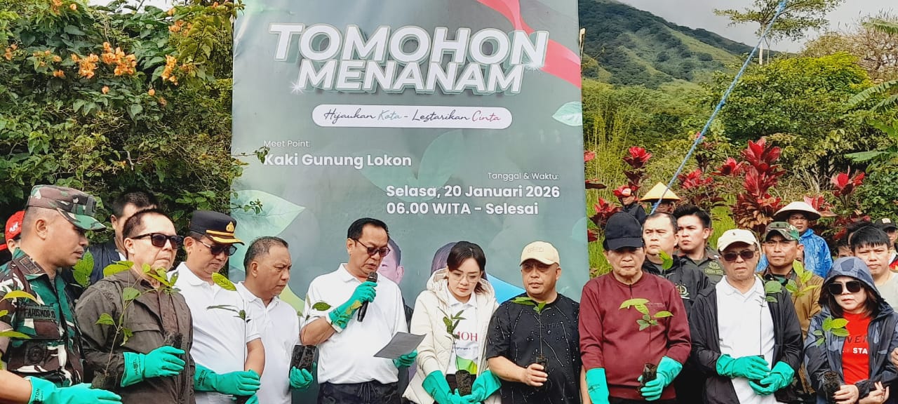 TOMOHON-SM. Dalam rangka memperingati Hari Ulang Tahun (HUT) ke-23 Kota Tomohon, Pemerintah Kota Tomohon melaksanakan aksi penanaman pohon di kawasan cagar alam kaki Gunung Lokon, Selasa pagi (20/1/2026).