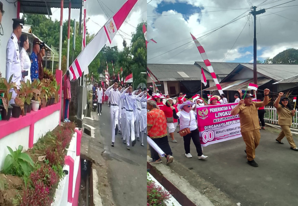 TOMOHON-SM. Pagi itu, Lapangan Wantol di Kelurahan Kayawu Kecamatan Tomohon Utara dipenuhi warna merah putih. Dari perangkat kelurahan, para tokoh masyarakat, hingga warga dari delapan lingkungan, semua hadir untuk merayakan HUT ke-80 Proklamasi Kemerdekaan Republik Indonesia, Minggu (17/8/2025).