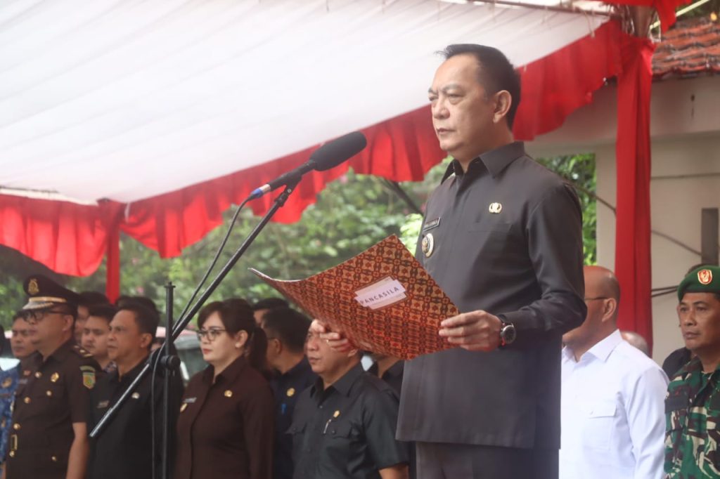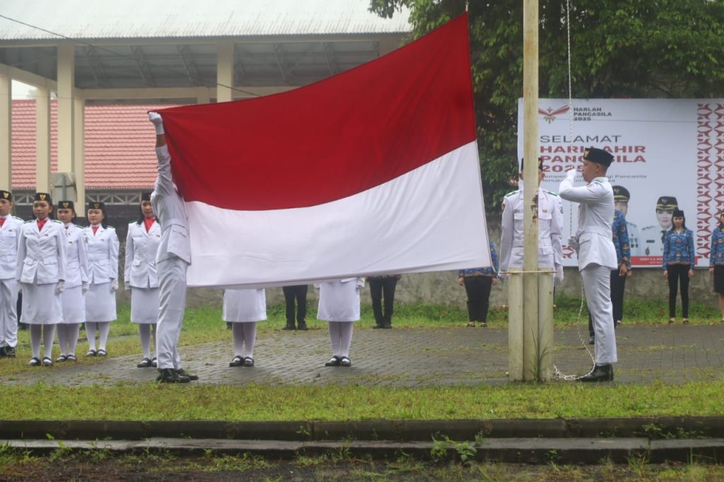 TOMOHON-SM. Pemerintah Kota Tomohon melaksanakan Upacara Bendera dalam rangka Peringatan Hari Lahir Pancasila Tahun 2025 di Lapangan Kantor Wali Kota Tomohon, Senin, 2/6/2025.
