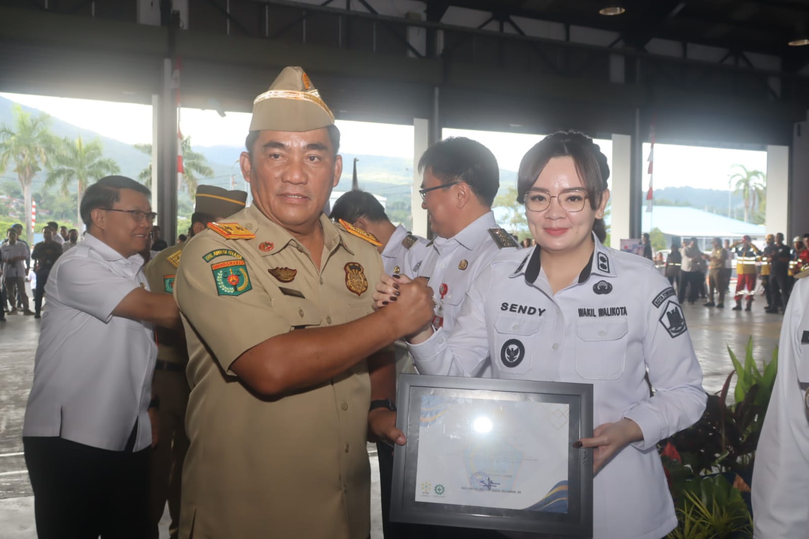 Dalam kesempatan tersebut, Wakil Wali Kota Tomohon mewakili Wali Kota Tomohon menerima penghargaan dari Gubernur Sulawesi Utara atas prestasi Pemerintah Kota Tomohon dalam membina dan mengembangkan program Keselamatan dan Kesehatan Kerja (K3).